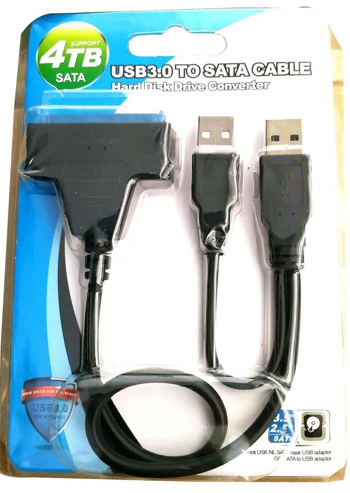 This is a 2-in-1 SATA adapter which features a USB 3.0 to SA-TA converter cable for 2.5 inch SA-TA SDD hard drives and a USB 3.0 to USB cable for 3.5 inch SATA SDD hard drives.